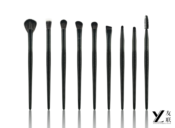 Dibuat dengan kecanggihan dan daya tahan dalam pikiran, 9-piece iniset kuas makeupdirancang untuk meningkatkan rutinitas kecantikan Anda. Menampilkan pegangan hitam yang ramping dan mengkilap yang terbuat dari plastik yang dicetak injeksi berkualitas tinggi, dipasangkan dengan ferrule aluminium dengan lapisan hitam yang disikat, inikuasmemancarkan estetika profesional modern.